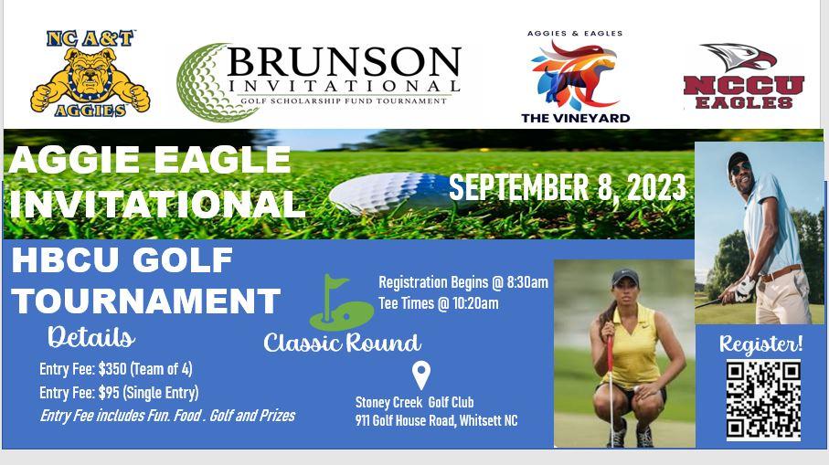 This tournament is hosted in partnership with Brunson’s Golf Invitational and Aggies and Eagles on the Vineyard (AEOTV) to raise scholarship funds for HBCUs.