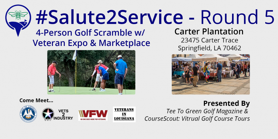 Come to the 5th round of the Salute2Service Networking Event and Scramble being held at the scenic Carter Plantation on Saturday November 13, 2021. CourseScout is hosting the networking event in support of Vets2Industry to help foster business opportunities between veterans and local businesses leaders.